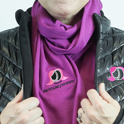This pretty berry scarf is essential for your Hockey Mommy needs.